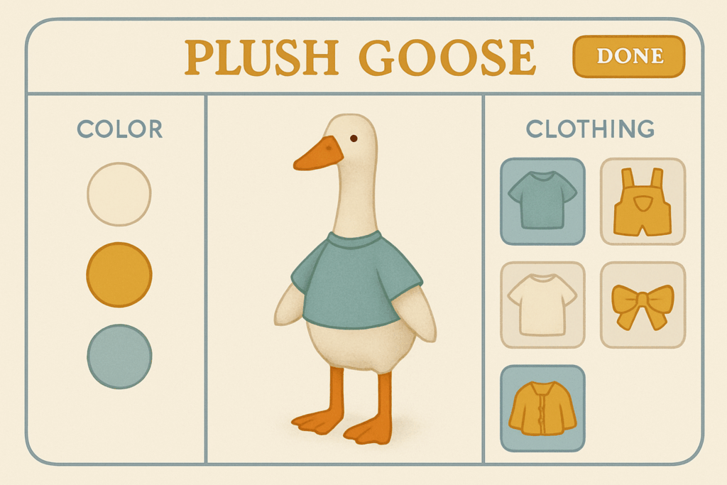 En quelques clics, votre oie devient unique, prête à être cousue juste pour vous.