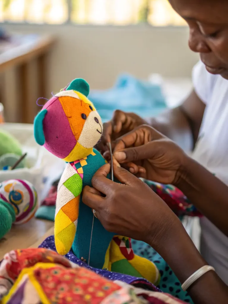 Dans mon atelier chaleureux, à Pau, chaque oie naît d’un savoir-faire artisanal. Tissus nobles, coutures précises, finitions délicates : je crée des pièces uniques en séries limitées.