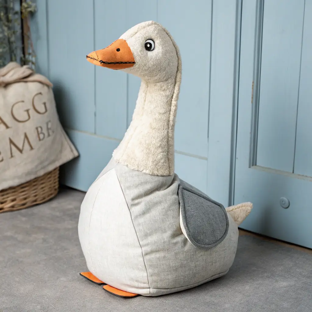 Découvrez nos oies fabriquées avec soin. Que vous les préfériez en peluche ou en charmants cale-porte toutes portent en elles une âme, une couture après l’autre.